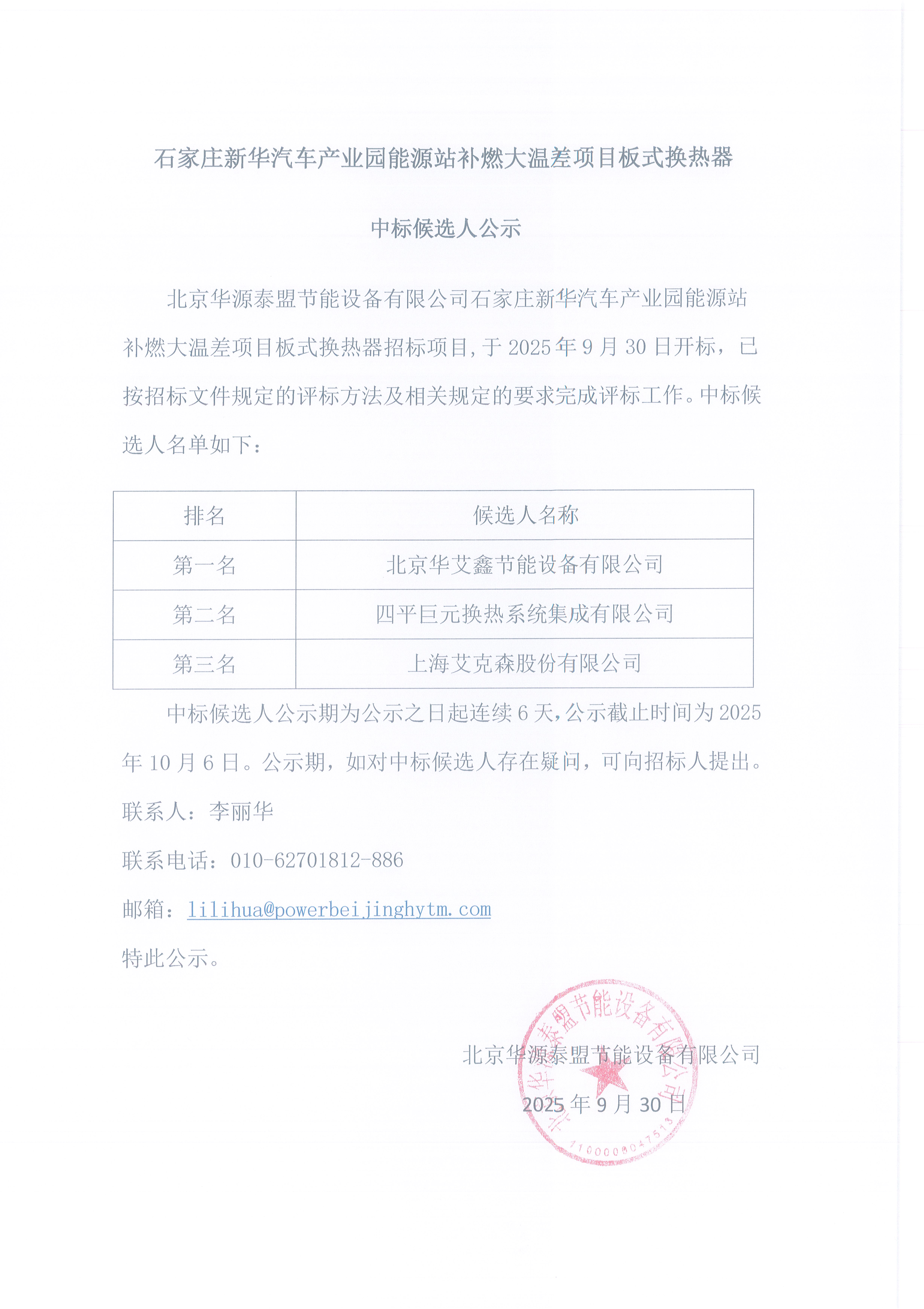 石家庄新华汽车产业园能源站补燃大温差项目板式换热器中标候选人公示 返回列表 2025-09-30 58 分享 → 点击下载完整文件:石家庄新华汽车产业园能源站补燃大温差项目板式换热器中标候选人公示 上一条赣州集盛氯化钙废水项目氯化钙蒸发浓缩和喷雾干燥造粒成套系统中标候选人公示 2025-03-28 下一条暂无数据!