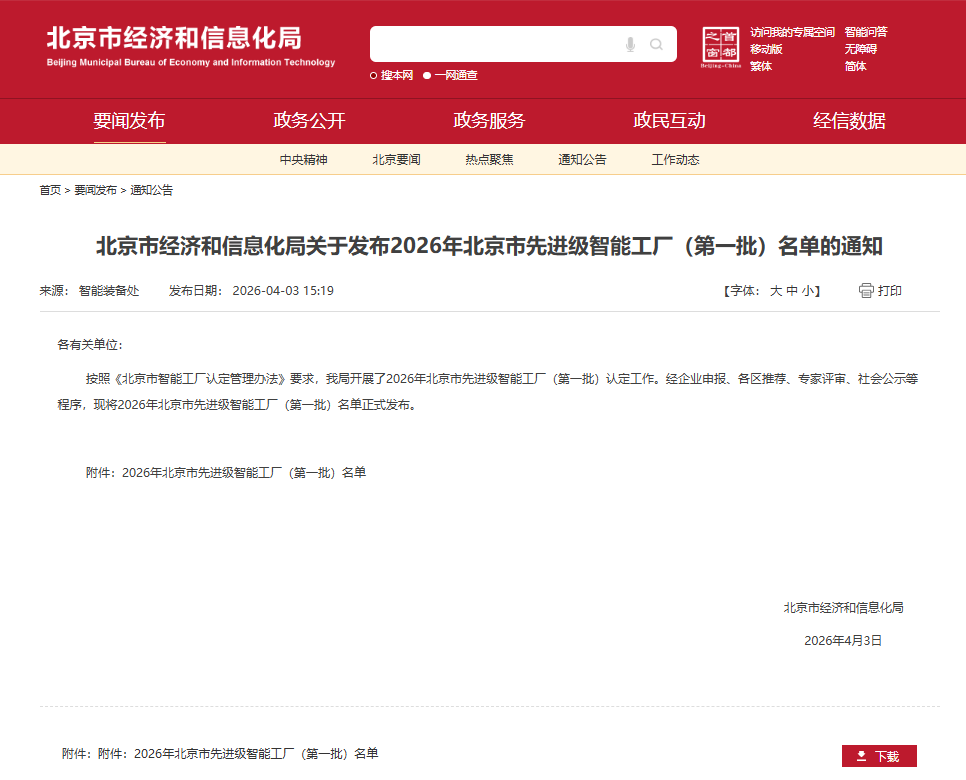 近日,北京市经济和信息化局公布"2026年北京市先进级智能工厂"首批名单。在全市入选的28家标杆企业中,365英国,365英国app,365英国官网,365英国平台成功获评先进级智能工厂。
