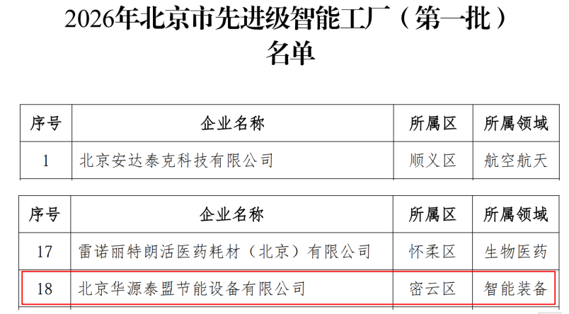 华源泰盟入选"2026年北京市先进级智能工厂"首批名单